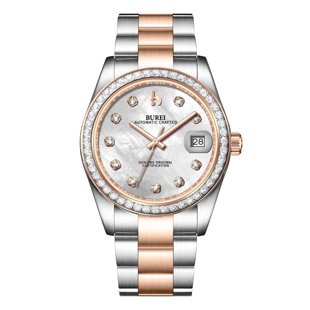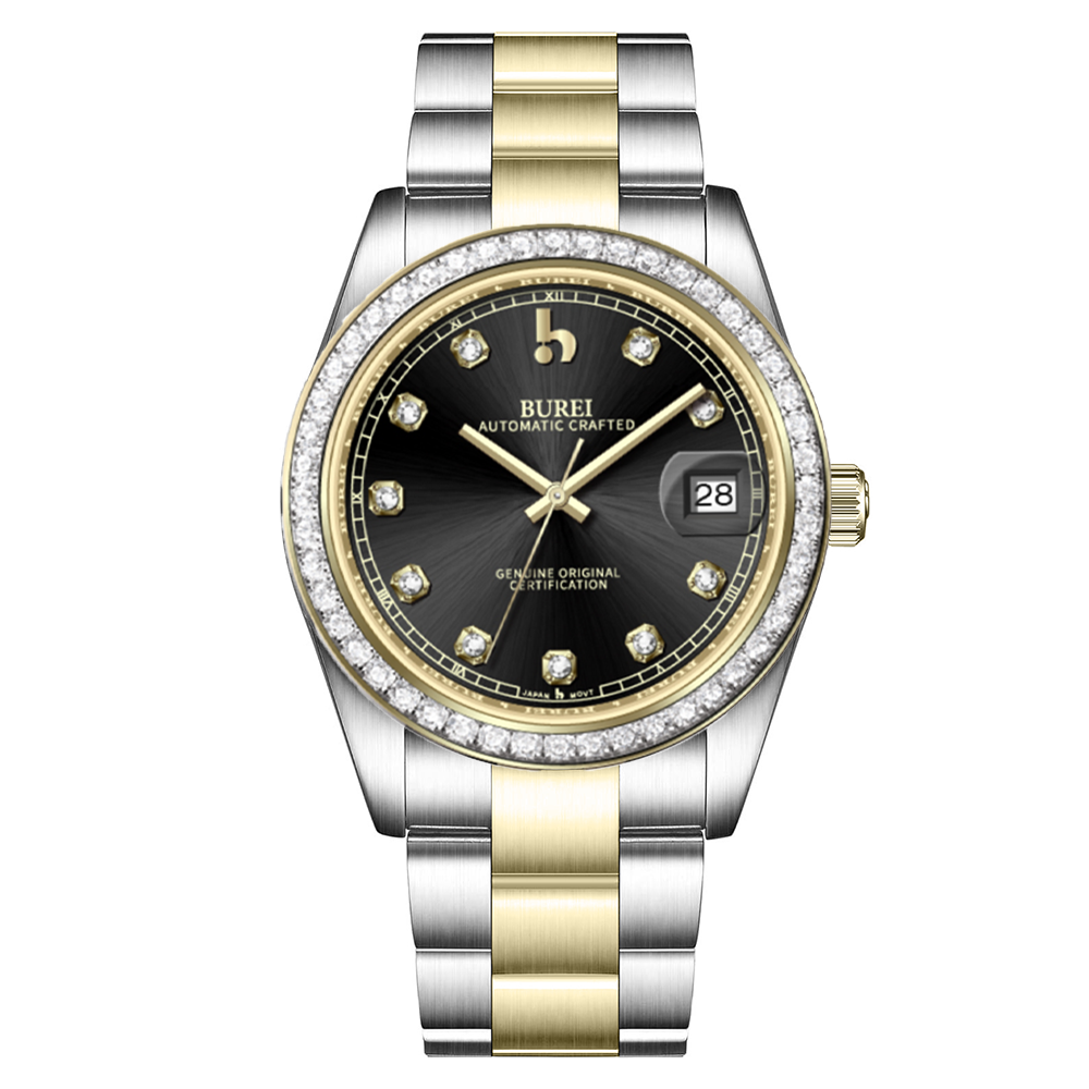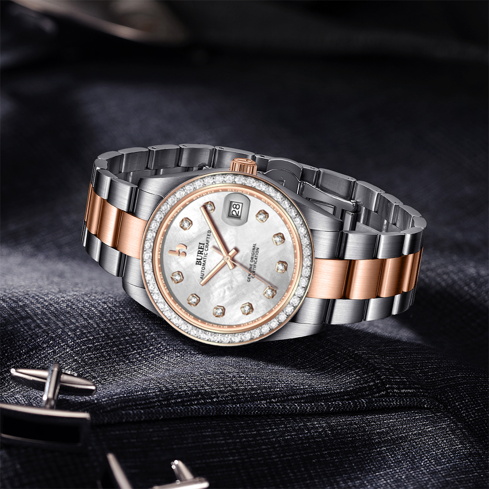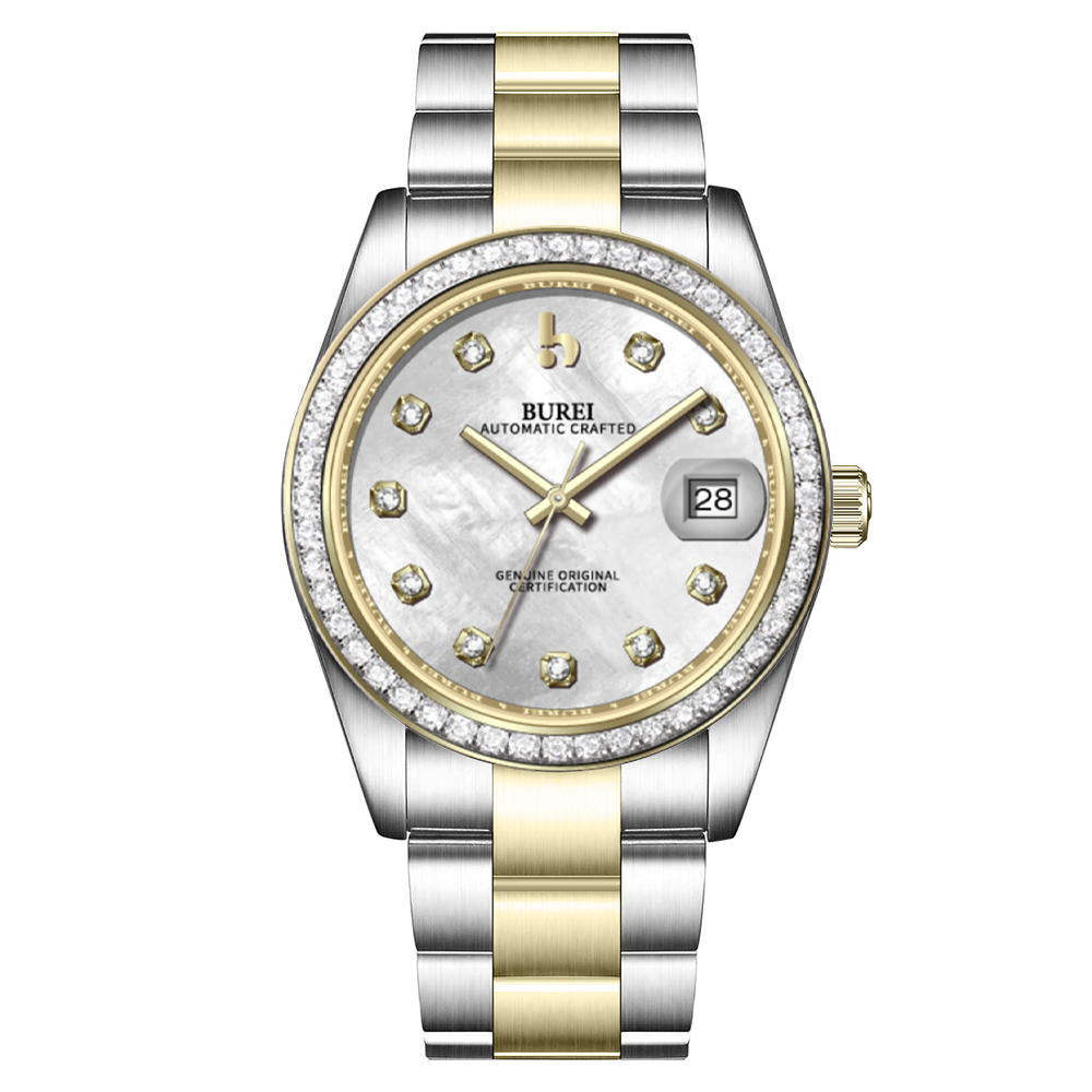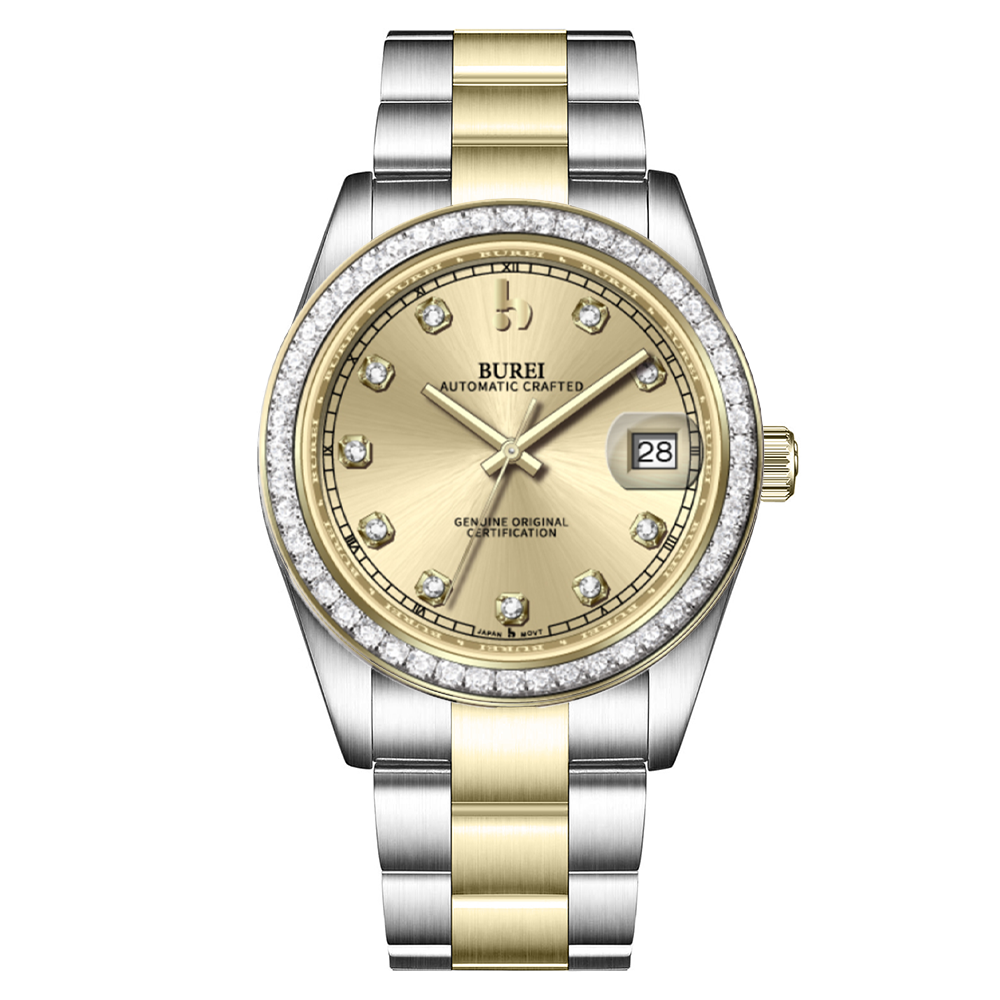 BUREI Luxury Automatic Watch 36mm, Fashion Waterproof Mechanical Watch, Adjustable Stainless Steel Two Tone Strap