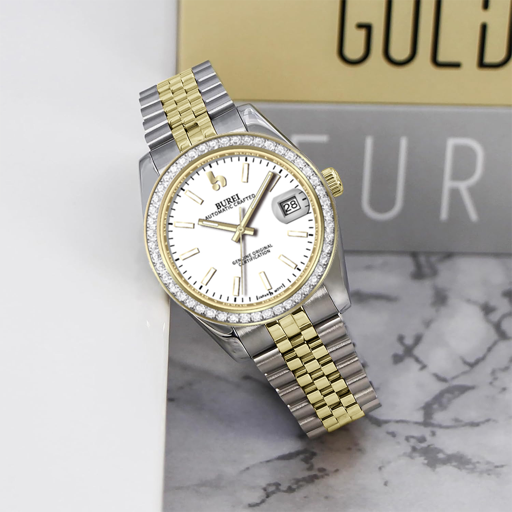 BUREI Luxury Automatic Watch 36mm, Fashion Waterproof Mechanical Watch, Adjustable Stainless Steel Two Tone Strap