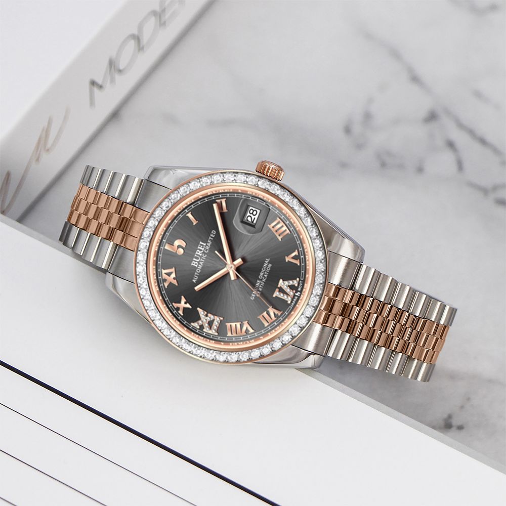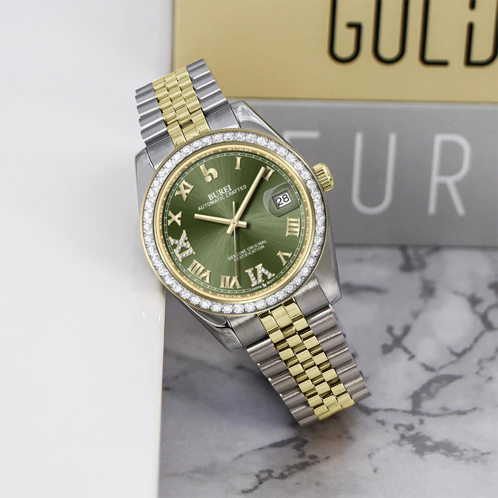 BUREI Luxury Automatic Watch 36mm, Fashion Waterproof Mechanical Watch, Adjustable Stainless Steel Two Tone Strap