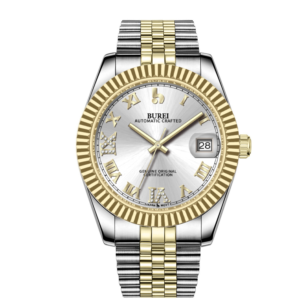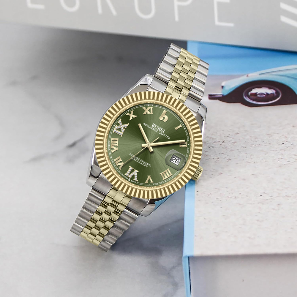 BUREI Luxury Automatic Watch 36mm, Fashion Waterproof Mechanical Watch, Adjustable Stainless Steel Two Tone Strap