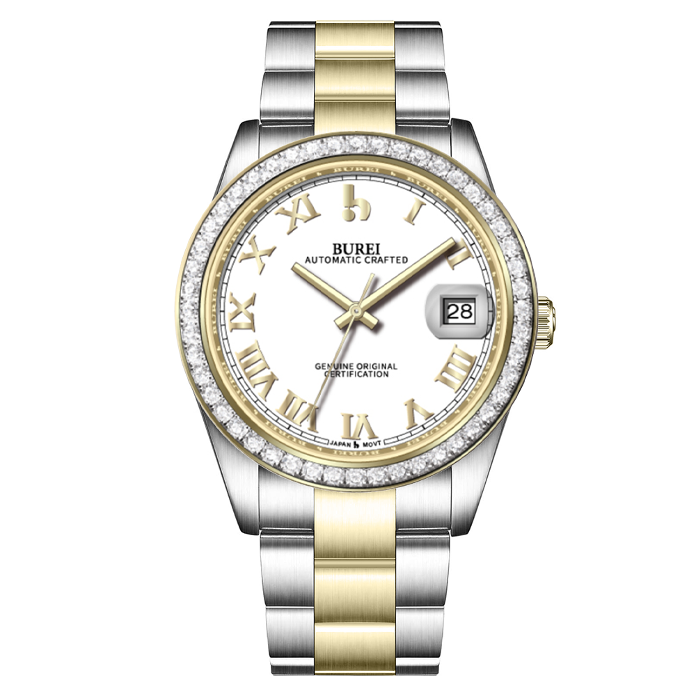 BUREI Luxury Automatic Watch 36mm, Fashion Waterproof Mechanical Watch, Adjustable Stainless Steel Two Tone Strap