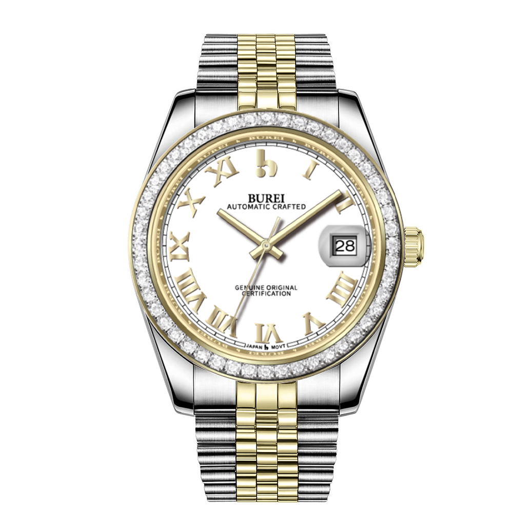 BUREI Luxury Automatic Watch 36mm, Fashion Waterproof Mechanical Watch, Adjustable Stainless Steel Two Tone Strap