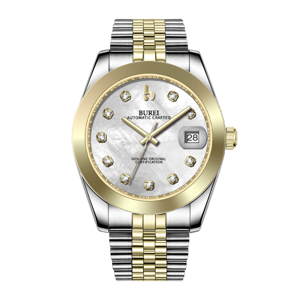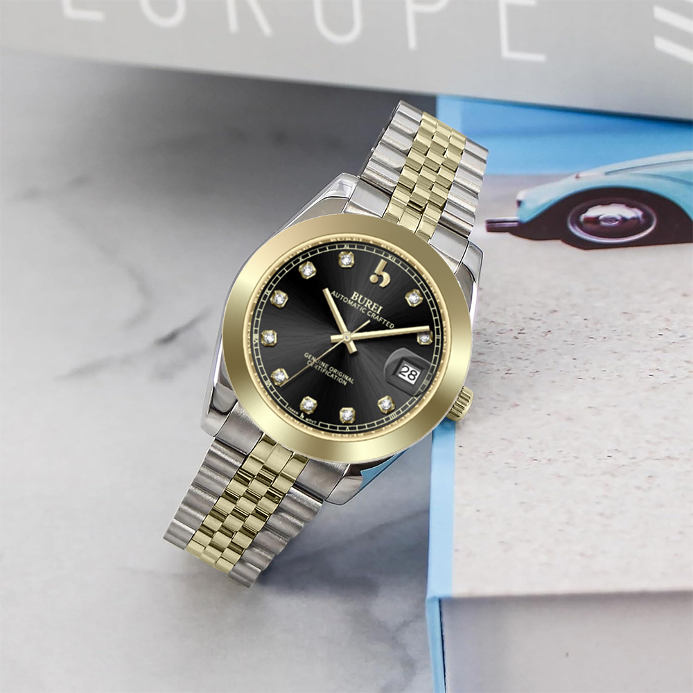 BUREI Luxury Automatic Watch 36mm, Fashion Waterproof Mechanical Watch, Adjustable Stainless Steel Two Tone Strap