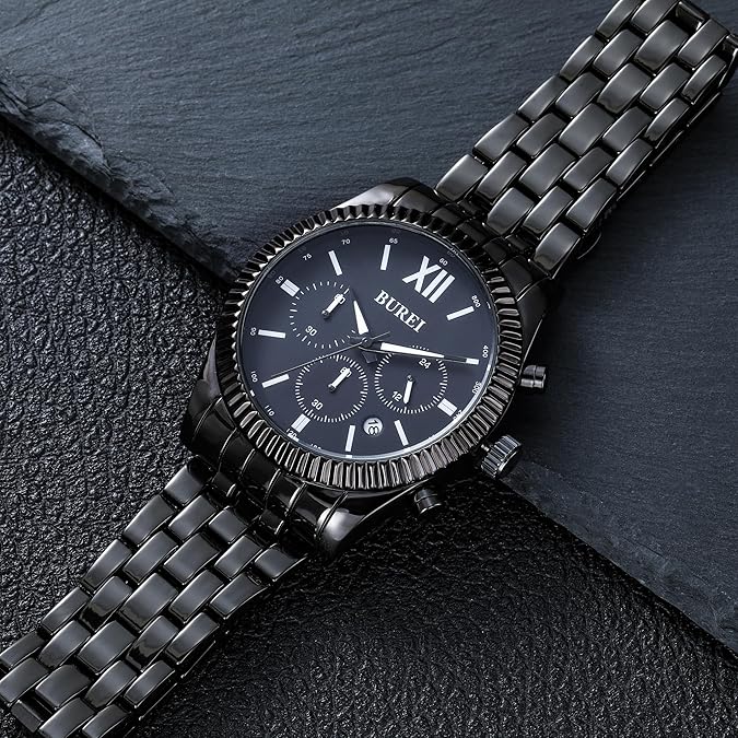 BUREI Men Fashion Dress Watches Analog Stainless Steel Waterproof Wrist Watches for Men