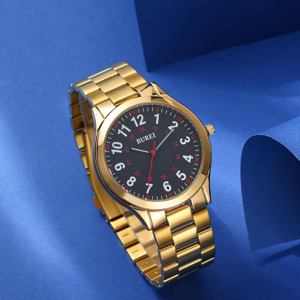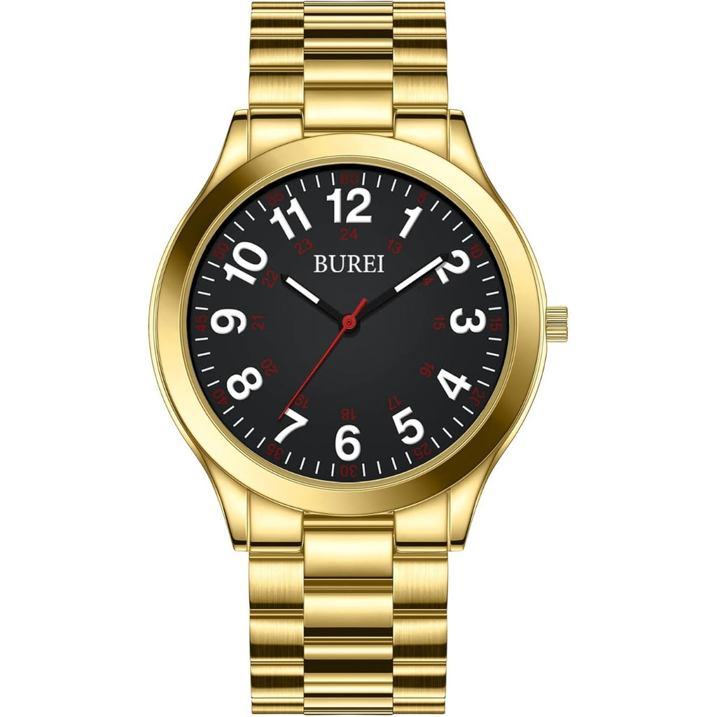BUREI Men Watches Fashion Analog Stainless Steel Quartz Waterproof Watches for Men