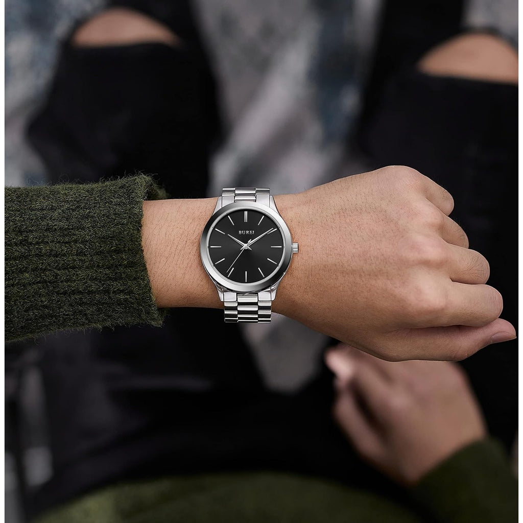 BUREI men's stainless steel fashion business watch japanese movement quartz watch men's 41mm luxury round watch