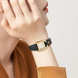 BUREI Women's Watch Classic Leather Strap Square Quartz Ladies Watch,Simple Waterproof with Calendar Design, Gift for Women