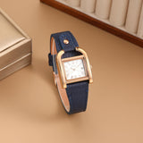 [Elegant Daily Use]: Blue soft leather strap with adjustable buckle, comfortable and breathable, easy to wear. Square stainless steel dial, fashionable and atmospheric. Arabic numerals, easy to read. Small date window provides date recording.