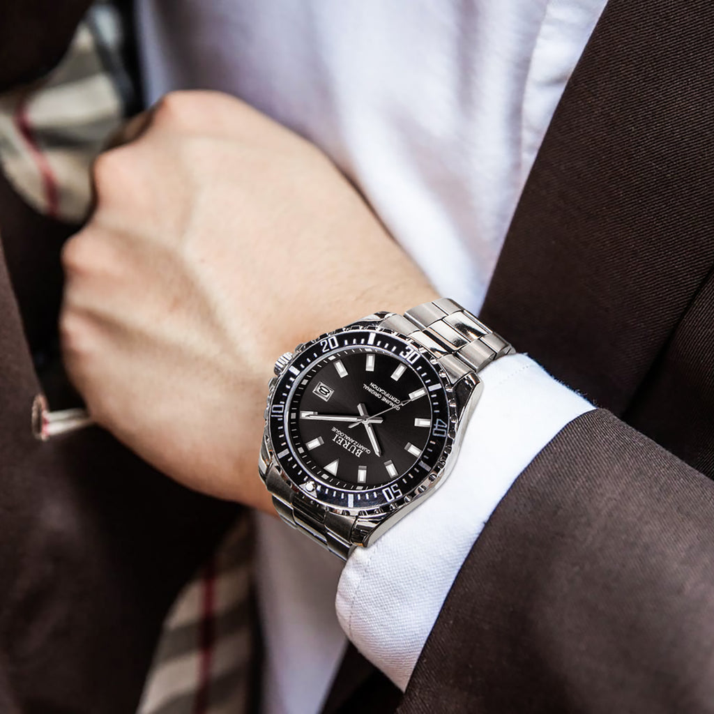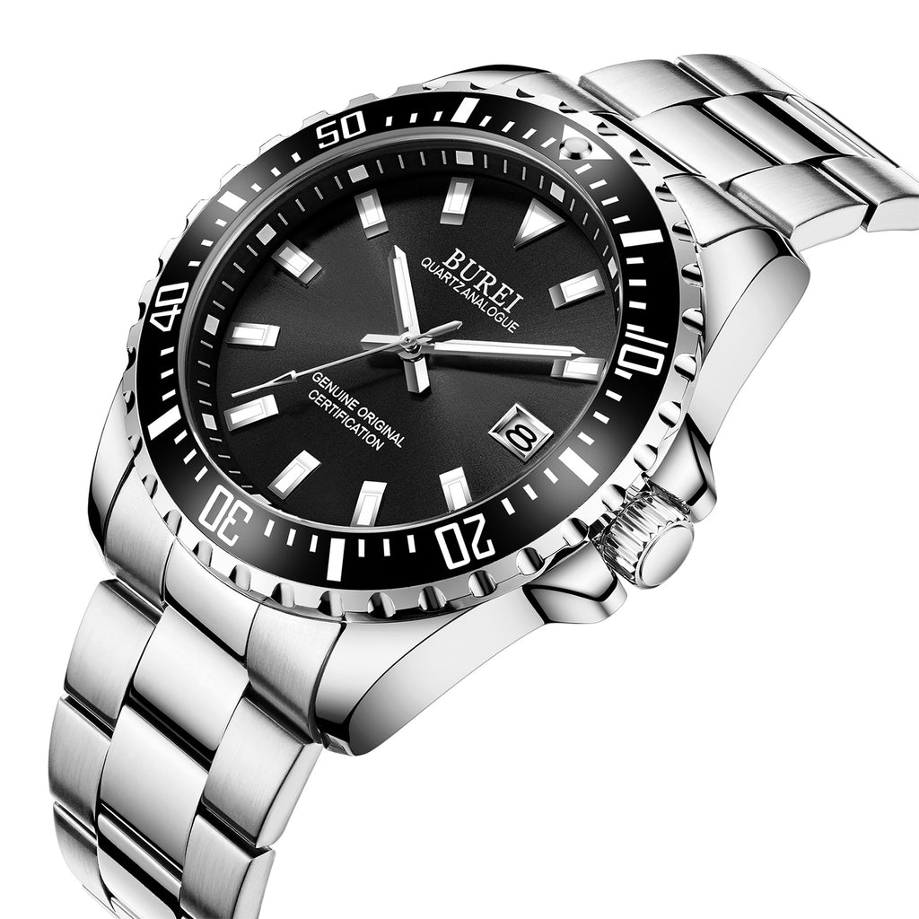 BUREI Mens Fashion Luxury Watch Classic Wrist Watch For Men With Stainless Steel Watch Band
