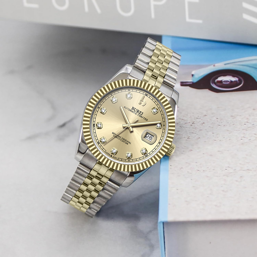 BUREI Men's Luxury Automatic Watch Fashion Waterproof Mechanical Watch, Adjustable Stainless Steel Two Tone Strap,Gift for Men
