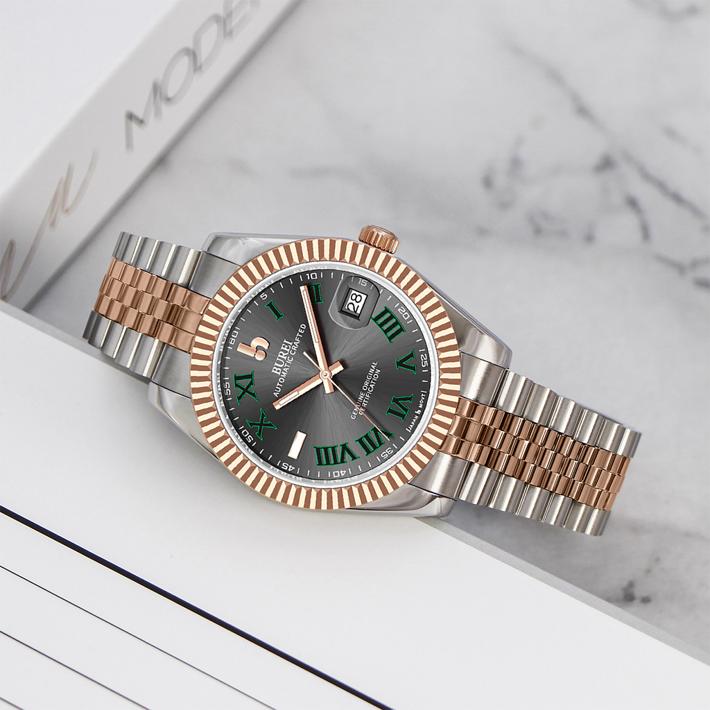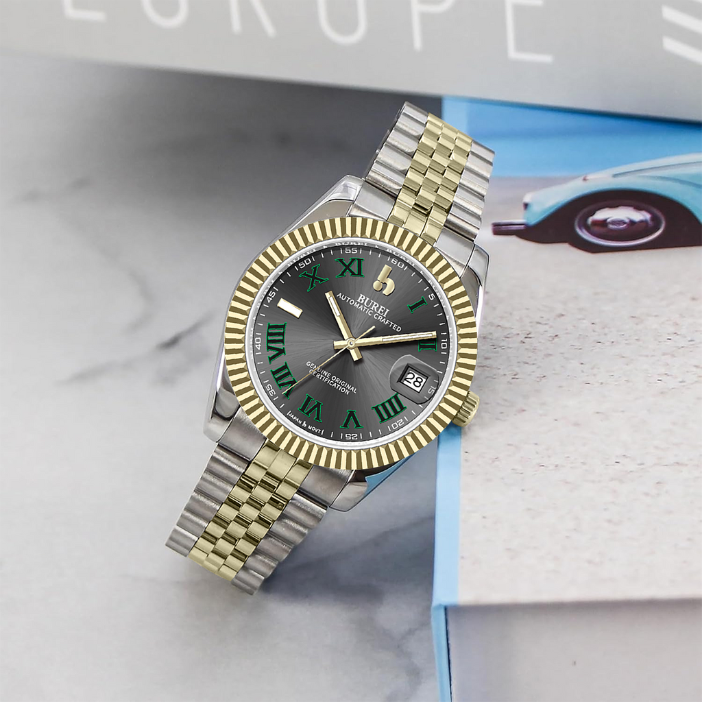 BUREI Men's Luxury Automatic Watch Fashion Waterproof Mechanical Watch, Adjustable Stainless Steel Two Tone Strap,Gift for Men