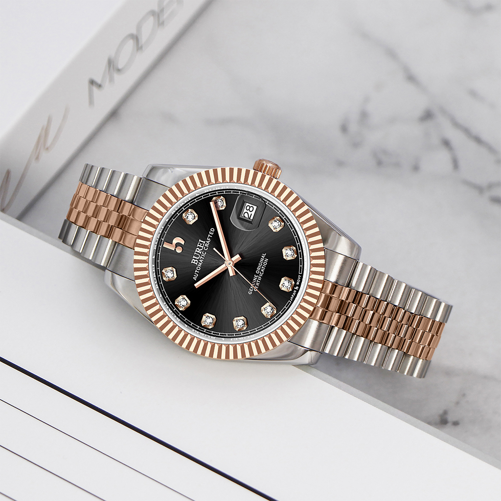 BUREI Men's Luxury Automatic Watch Fashion Waterproof Mechanical Watch, Adjustable Stainless Steel Two Tone Strap,Gift for Men