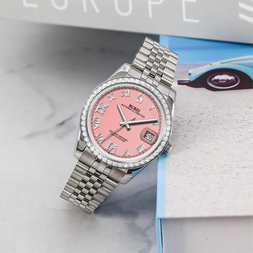 BUREI Luxury Automatic Watch 36mm, Fashion Waterproof Mechanical Watch, Adjustable Stainless Steel Two Tone Strap
