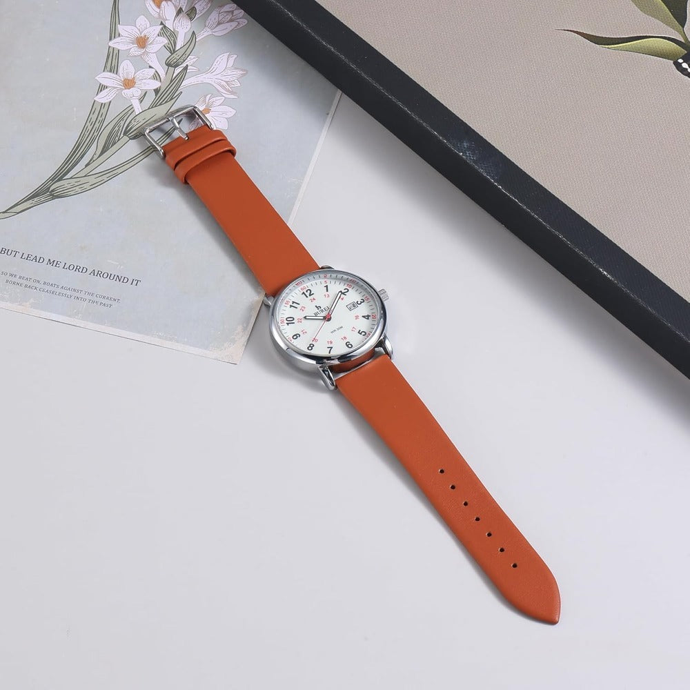 [Material]: Ultra-soft leather strap, soft, comfortable and breathable to wear; mineral mirror, anti-scratch and wear-resistant, even if hard objects will not cause scratches; 316L stainless steel polished case, full of texture, show your temperament. Suitable for all occasions.
