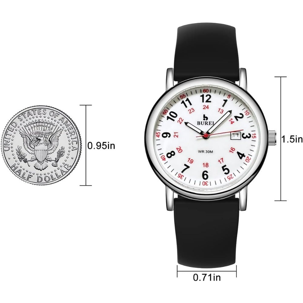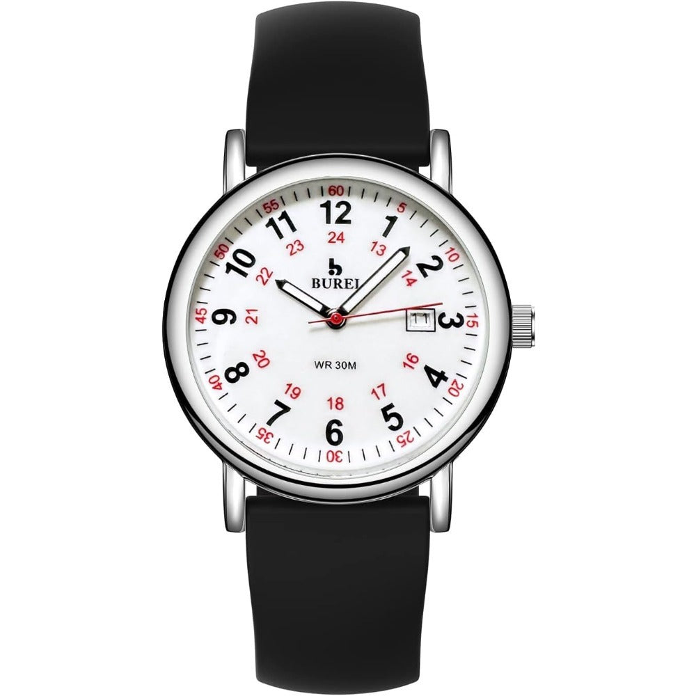 BUREI Nurse Wrist Watch for Nurse Medical Professionals Students Women Men, Waterproof 12/24 Hour Military Time Luminouse Easy Read Dial,Colorful Silicone Band
