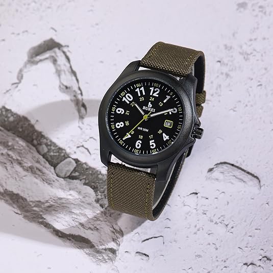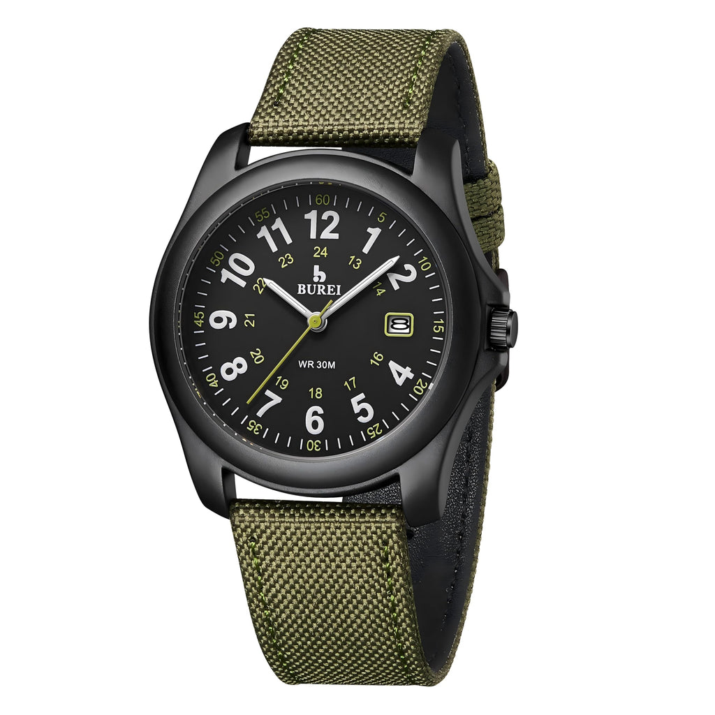 BUREI Men's Watch, Military-Style Watch with Date Display, Waterproof, Outdoor Sports, Gift for Men