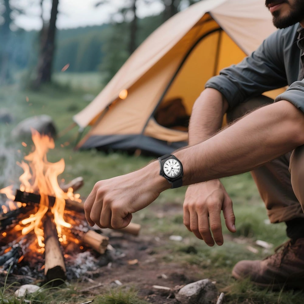 [Suitable for]: Designed for wilderness adventures and outdoor activities, this rugged nylon strap watch features 30-meter water resistance and luminescent hands. The dial includes a date display function.